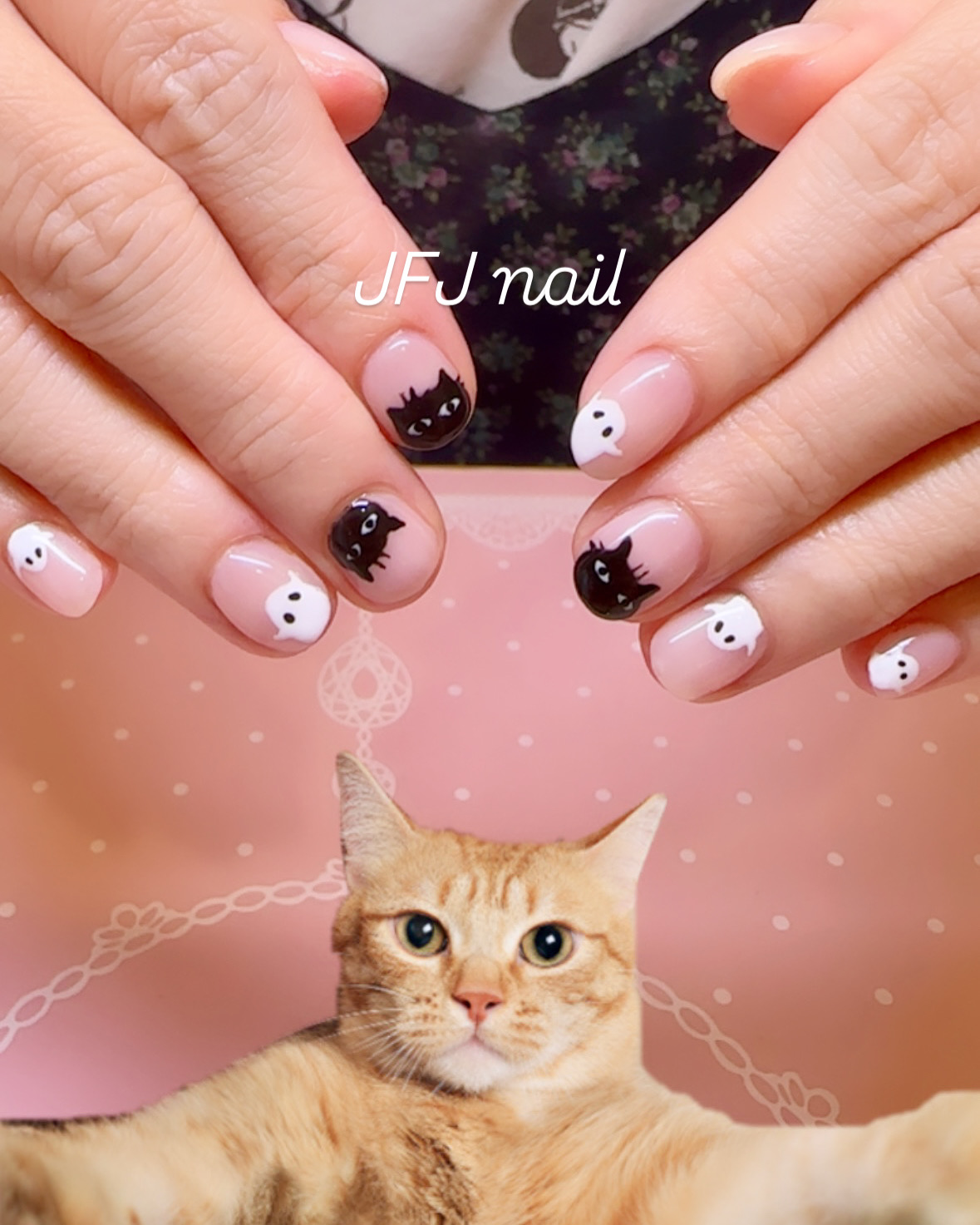 白色小精靈遇上黑色小貓 萬聖節的氣氛剛剛好~🖤🤍🎃 有一點可愛、有一點神秘 連指尖都準備好一起過節嚕✨ 佳日苑源自日本的美甲技術, 使用安心、安全的美甲產品, 保障您我權益。 學習美甲看這裡唷:光療凝膠全科班